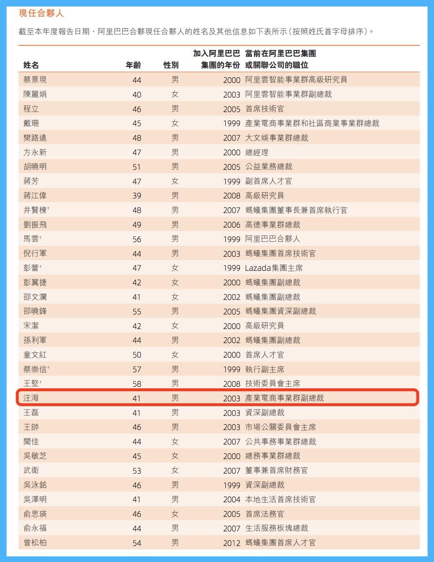 阿里巴巴部分现任合伙人名单(来源:公司财报)种种迹象表明,如今阿里巴巴这艘巨轮或已将B系重新推到前线,用以抗击外部竞争。