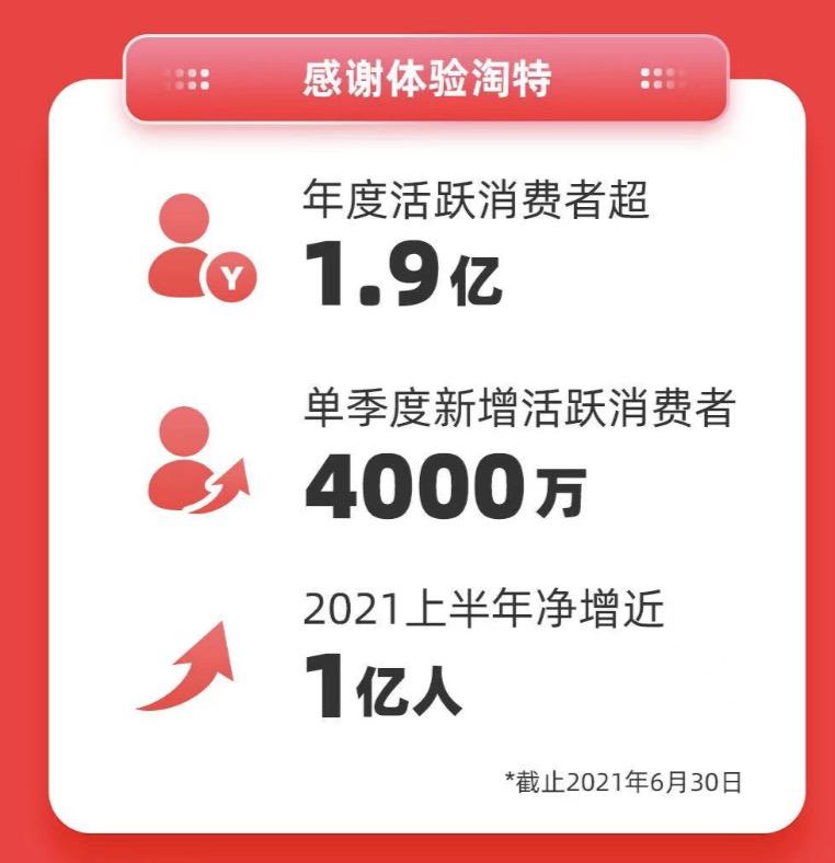 淘特最新年度活跃消费者数据如果不算Lazada、全球速卖通、Trendyol和Daraz所服务的2.65亿海外消费者,截至2021年6月30日,在阿里巴巴生态系统中有9.12亿年度活跃消费者来自中国地区。按此计算,淘特贡献了其中20.83%的用户,重要性不言而喻。