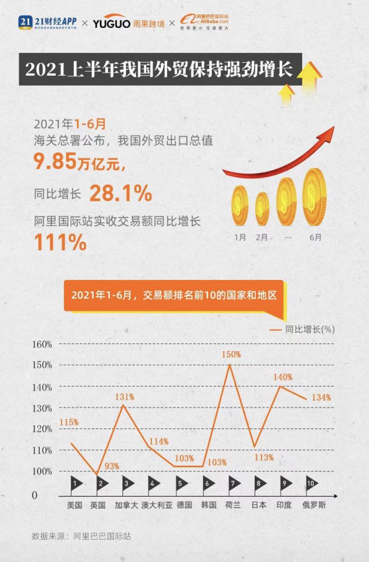 除了淘特活跃用户数和社区电商GMV的大幅增长,其它业务也在开花,阿里巴巴第一个业务阿里巴巴国际站2020年GMV同比也增长了101%,2021年上半年其增速又攀升至111%。