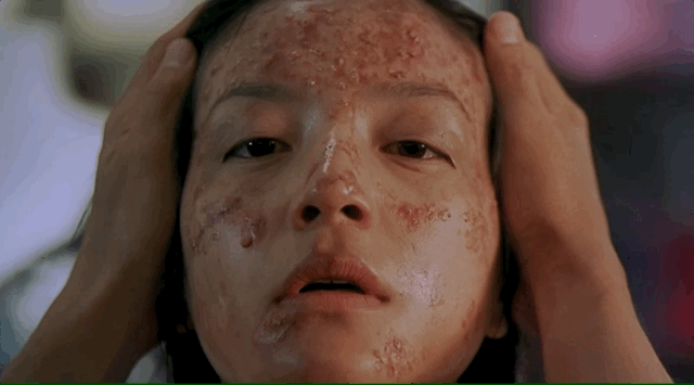 当周星驰拨开赵薇的头发,露出她长满痤疮的脸时,有苍蝇在她面前飞来飞去。