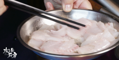 这道菜的鱼片比一般鱼片更嫩滑,更鲜香,更高颜值,且平时我们处理鱼片会碰到的腥味,粘锅,不入味和不嫩滑等问题,在对鱼片有方法地细致处理之后便烟消云散……从改刀,到上浆、封油,醒发鱼片……究竟如何处理鱼片,小编这里先卖个关子,下面就请大厨为我们揭开神秘面纱!