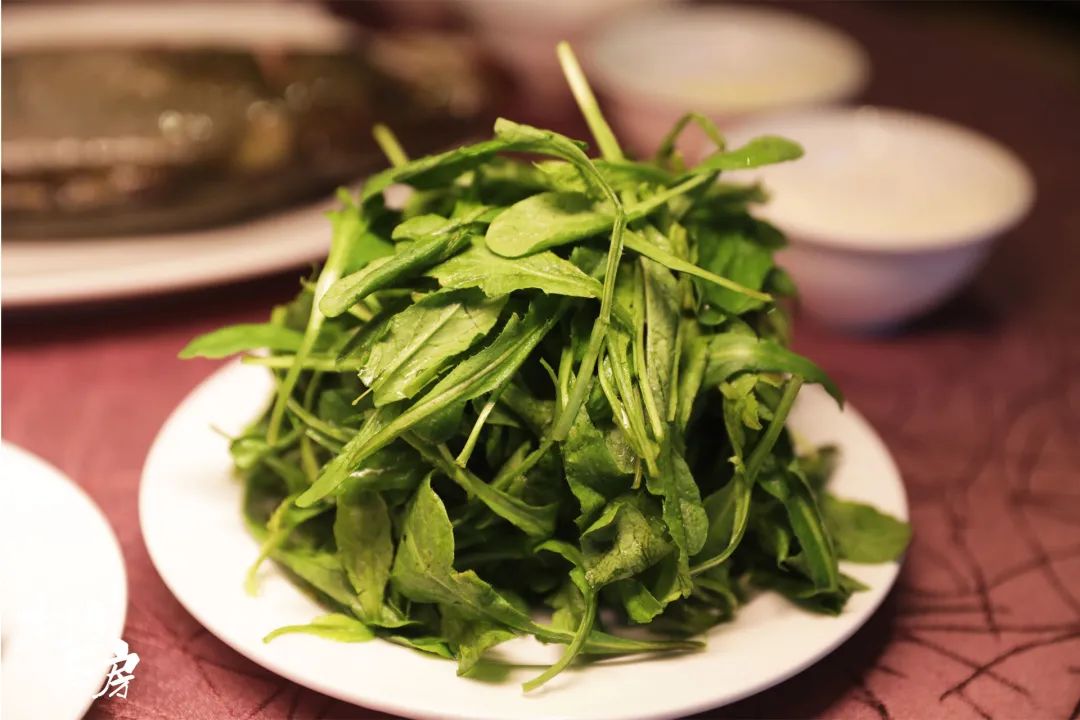 如今正值菌菇季,大厨便选用了香气四溢的鸡枞菌,再用鲜美脆口的荠菜做搭配,脆脆的又不失汁水,是别样的口感体验。颜色望过去是满眼的清新,更提高了食欲。