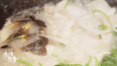 注意要一块一块地滑鱼片,锅底不黏连,才能保证鱼肉的口感新鲜弹脆。02