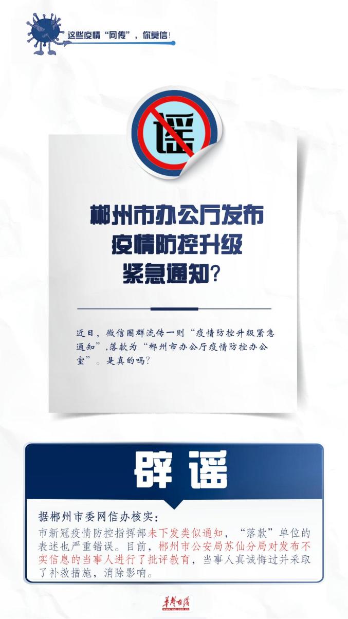 8月3日,隆回县部分微信群流传“怡然花园一个阳性”的消息。经核实,该县未出现“新冠肺炎疑似阳性病例”等情况,相关网民发布的信息为谣言。3.彬州市办公厅发布疫情防控升级紧急通知?