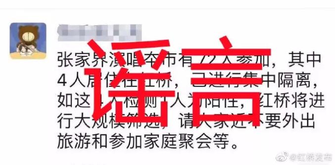 近日,有网民在微信群圈内传播涉天津市红桥区疫情相关消息,经与有关部门核实,相关消息为不实信息。请广大网民朋友及时关注权威信息,不信谣,不传谣,不造谣,共同营造清朗网络环境。区疫情防控指挥部提示广大居民,近期非必要不离津,非必要不前往发生疫情地区,非必要不出境,同时积极接种疫苗,做好个人防护,正确佩戴口罩,做到勤洗手、常通风、不聚集,保持安全社交距离,咳嗽、打喷嚏时注意遮挡,使用公筷公勺,养成良好的卫生习惯。