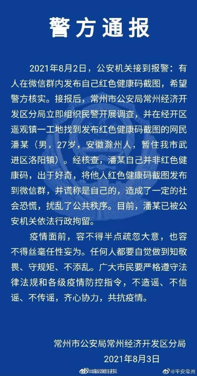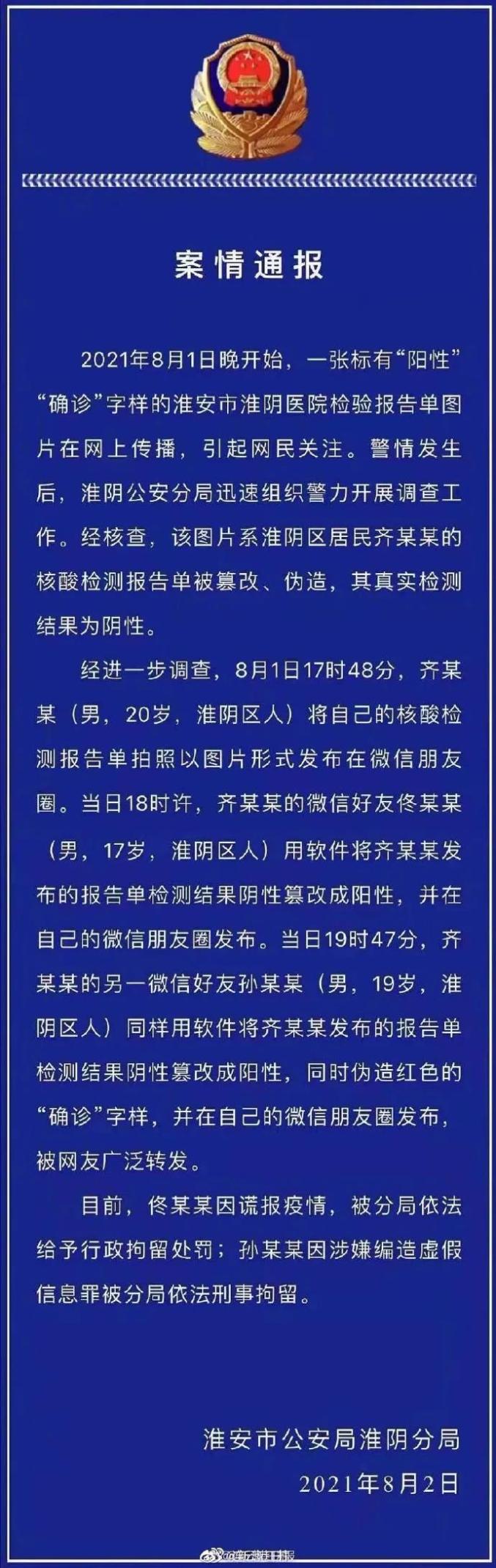 市公安局网络安全保卫支队负责人王剑介绍,8月2日晚,该支队联合新华公安分局网安大队将谣言首发传播者赵某伟传唤到案,赵某伟对其编造谣言信息的行为供认不讳。8月3日,赵某伟被新华公安分局处以行政拘留7日处罚。(记者 南朋英)