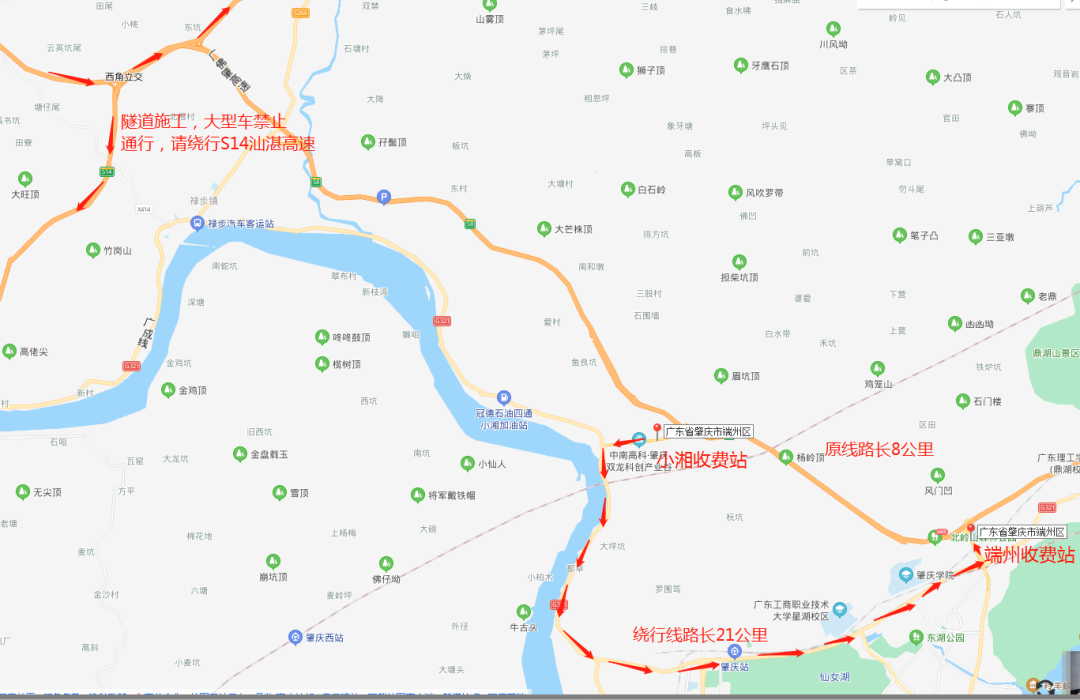 1、2021年8月5日8时至2021年8月14日24时S8广佛肇高速北岭山隧道东行方向全封闭施工(同时封闭小湘互通广州方向入口匝道),封闭期间东行车辆从西角互通、小湘互通出口驶出绕行。