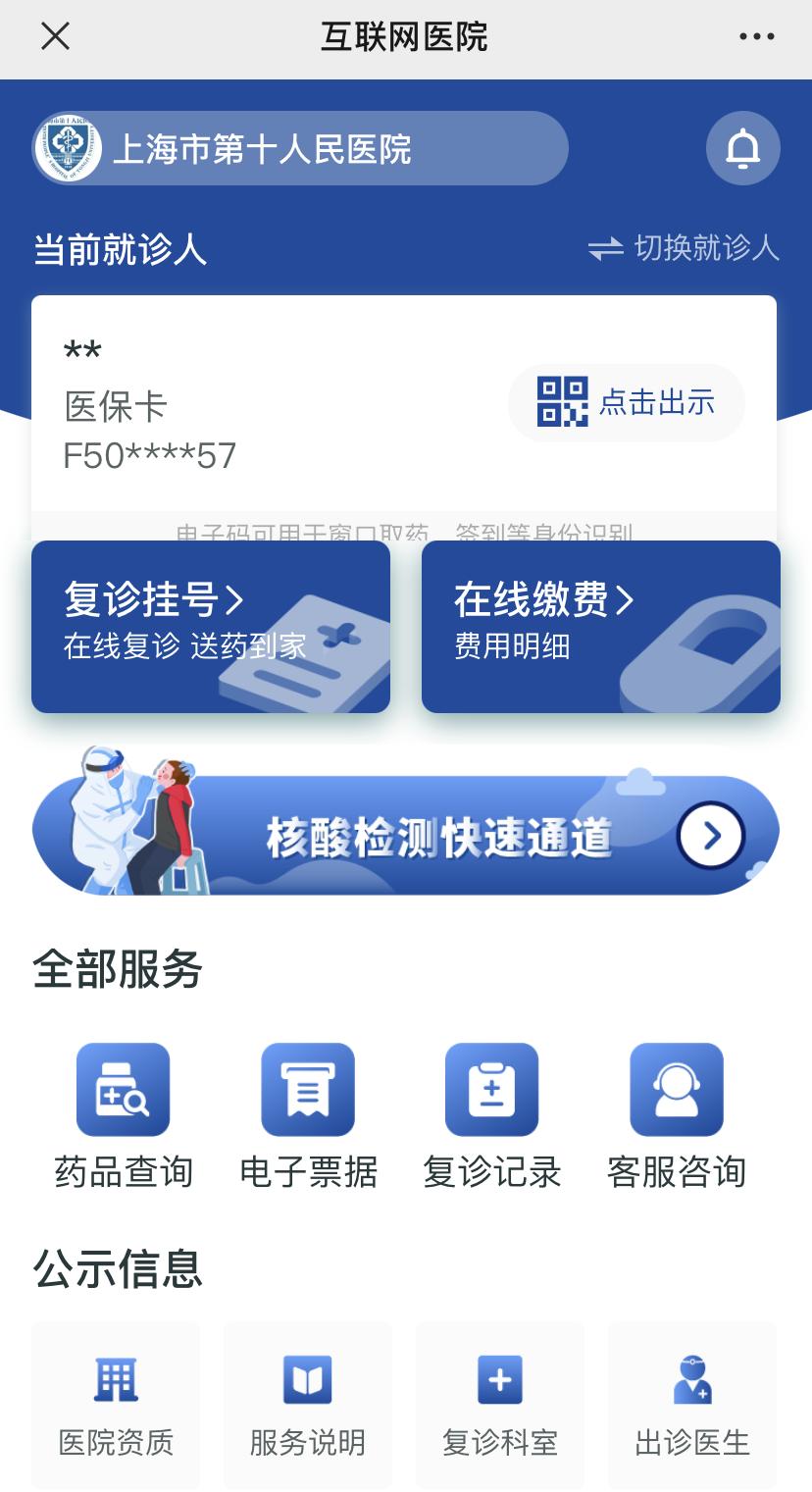 1、通过上海市第十人民医院微信公众号【就医服务】-【互联网医院】-【核酸检测快速通道】-【核酸检测报告查询】即可查询报告。