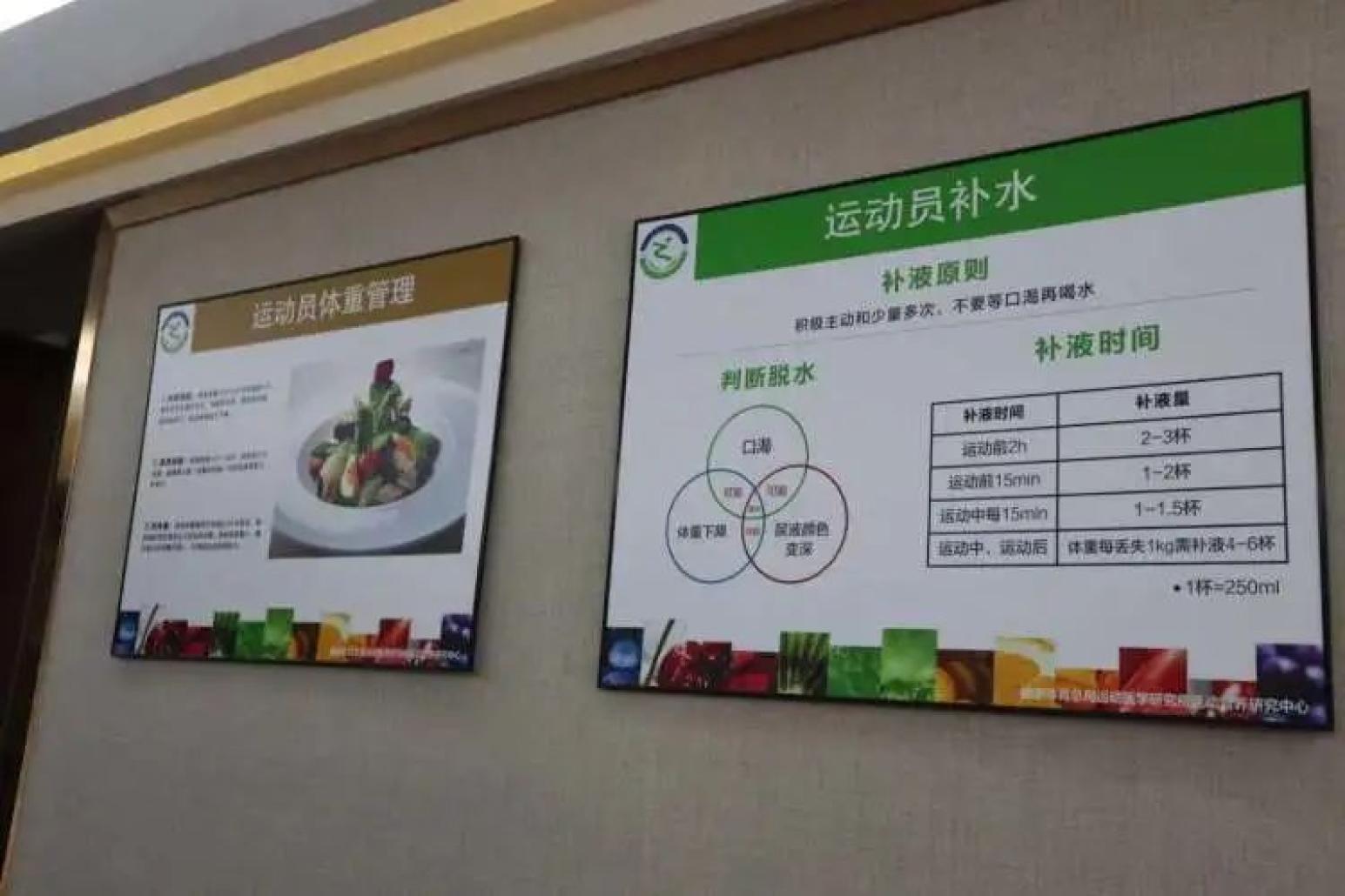 运动员饮食提示牌。“运动员们对饮食要求比较高,尤其是对于蛋白质的摄入,会对其(肉类)进行兴奋剂的检测,为此,肉质类的食材需从北京空运过来。同时我们请的大厨主要是做客家菜系,后来考虑到运动员和教练们都是来自天南海北的,饮食习惯不同,为此我们多方协调,配了面点师傅以及一些别的调味料,让每位运动员在龙岗吃好、训练好。”据龙岗区业余体校副校长胡晓丽介绍,龙岗专门组成综合保障队,来保障好国家运动员们在龙岗的吃喝住行。