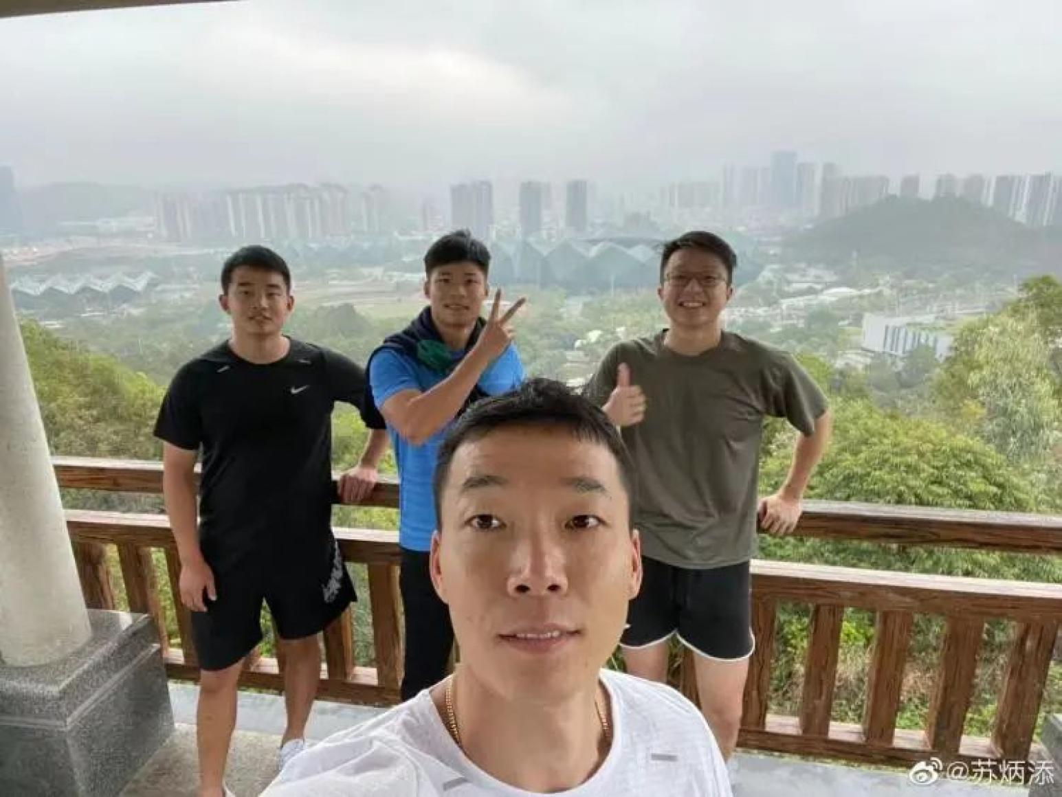 苏炳添的个人社交平台曾晒出集训期间登山照。此外,酒店还配备了桌球台、乒乓球台以及图书室,供运动员们训练之余休闲娱乐。大运体育馆周边有大运山、公园绿道、神仙岭水库等,环境清幽,人流较少,在保持正常的训练之余,教练员和运动员们也会“偷闲”出门爬山亲近自然。