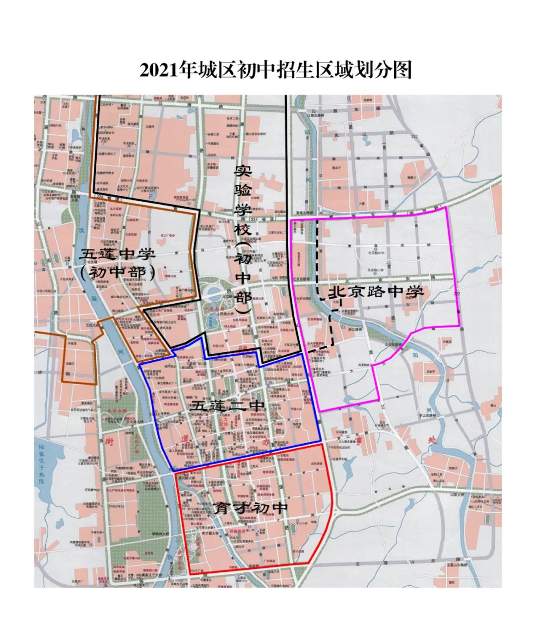 1.初中:城区初中招生区域为南起五莲山路→山东路→利民东路→浙江路→文化东路,北至黄海路,东起222省道,西至滨河路。