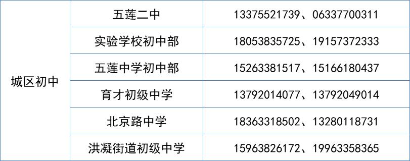 ⑷育才初级中学(五莲一中初中部):罗山路以南,五莲山路以北,滨河路以东,山东路以西区域。另外,接收洪凝街道却坡村居委会户口所在地居民子女;石场乡辖区户口所在地居民子女。