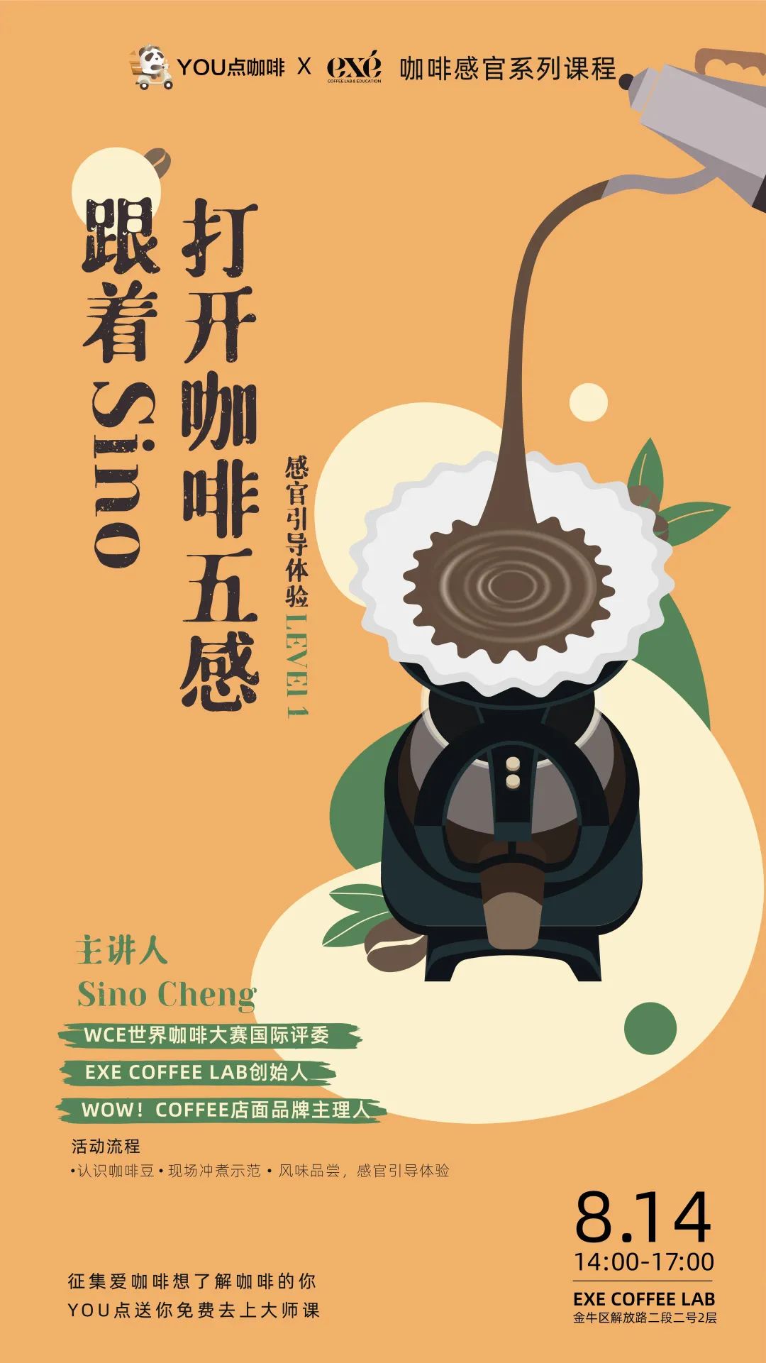 跟着Sino打开咖啡五感8月14日 14:00-17:00