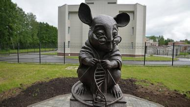 俄罗斯新西伯利亚细胞学和遗传学研究所前的实验鼠纪念碑