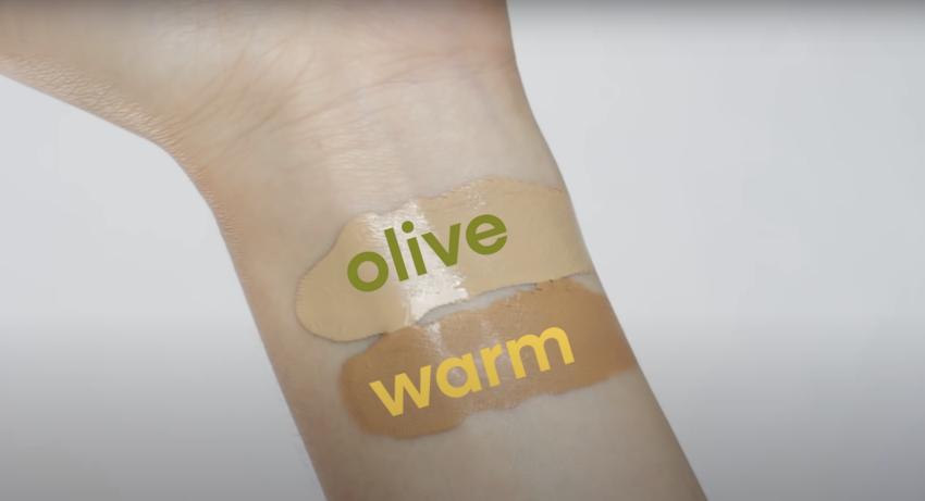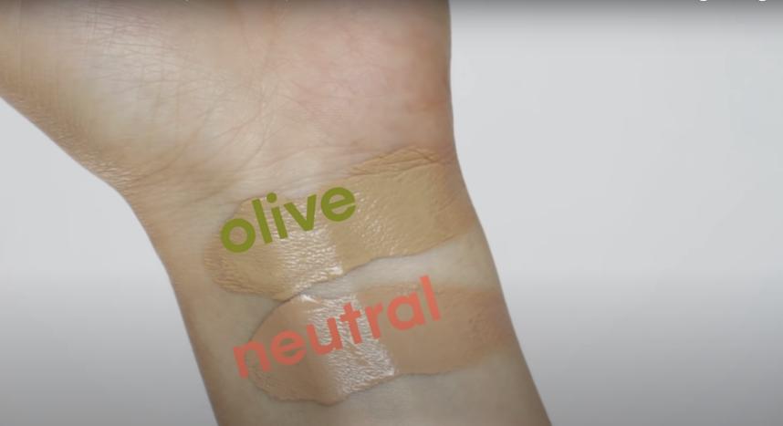 橄榄调粉底与暖调、中性调的对比丨Haley Kim / youtube直到很久之后我才意识到,并不是这些粉底色号太橘,而是我太绿了(?)。