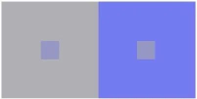 这其实也是视错觉的一种,比如说中间的两个方块,乍一看会觉得左边的紫一点而右边的灰一点,但其实它们是一样的颜色丨anopticalillusion