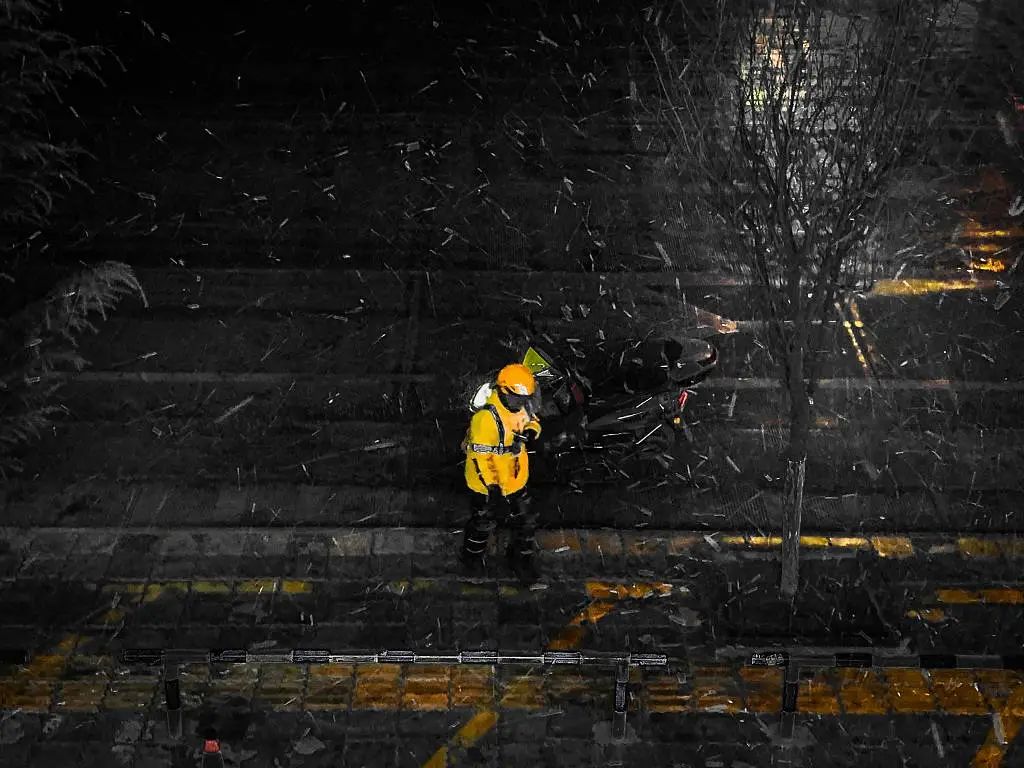 但当时张涛没太在意,“咱这么结实,怕啥?歇一歇。”他走到路边坐下,裤子破了,电动车的保险杠也歪了,但最让人担心的还是手里的两份餐——他开始打电话给配送站里的队长,队长会帮忙联系商家和客户,要对方取消订单。这令他沮丧,但又不算大事,他每个月至少被扣一百多元,有时是订单超时被系统扣钱,有时是因为摔倒或者超时太久,只能自己出钱,从客户那里把那份餐食买下来。