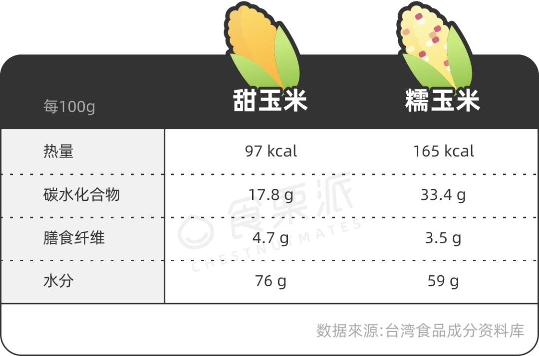 需要提醒的是,甜玉米的碳水化合物含量也跟马铃薯接近了,吃多了一样会胖、一样会大大地影响血糖。一根中等大小的甜玉米的的热量,跟半碗米饭差不多。