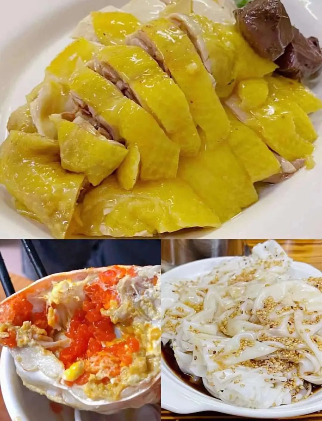 比如白切鸡、牛杂煲、簸箕炊、炸虾饼等等。