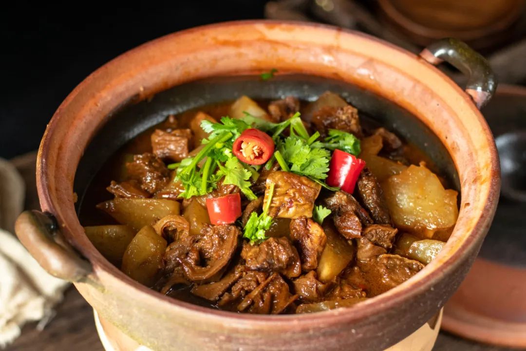 湛江牛杂煲是将牛杂反复清洗后先进行一定时间的腌制,然后用文火焖煮至九成熟。最后再清洗一次,放入八角、茴香、陈皮、桂皮、沙姜、豆蔻等调料,加入酱汁一起焖熟。