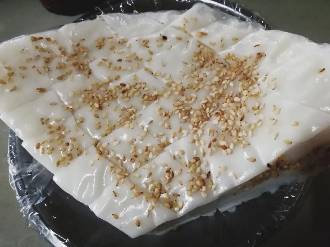 最后,等每一层的米粉都熟了,再用小刀切为块状,淋上香油、芝麻、蒜鸡油或者橄榄菜等佐料。吃起来香浓而不腻味,回味也香甜,是一款老少皆宜的小吃。