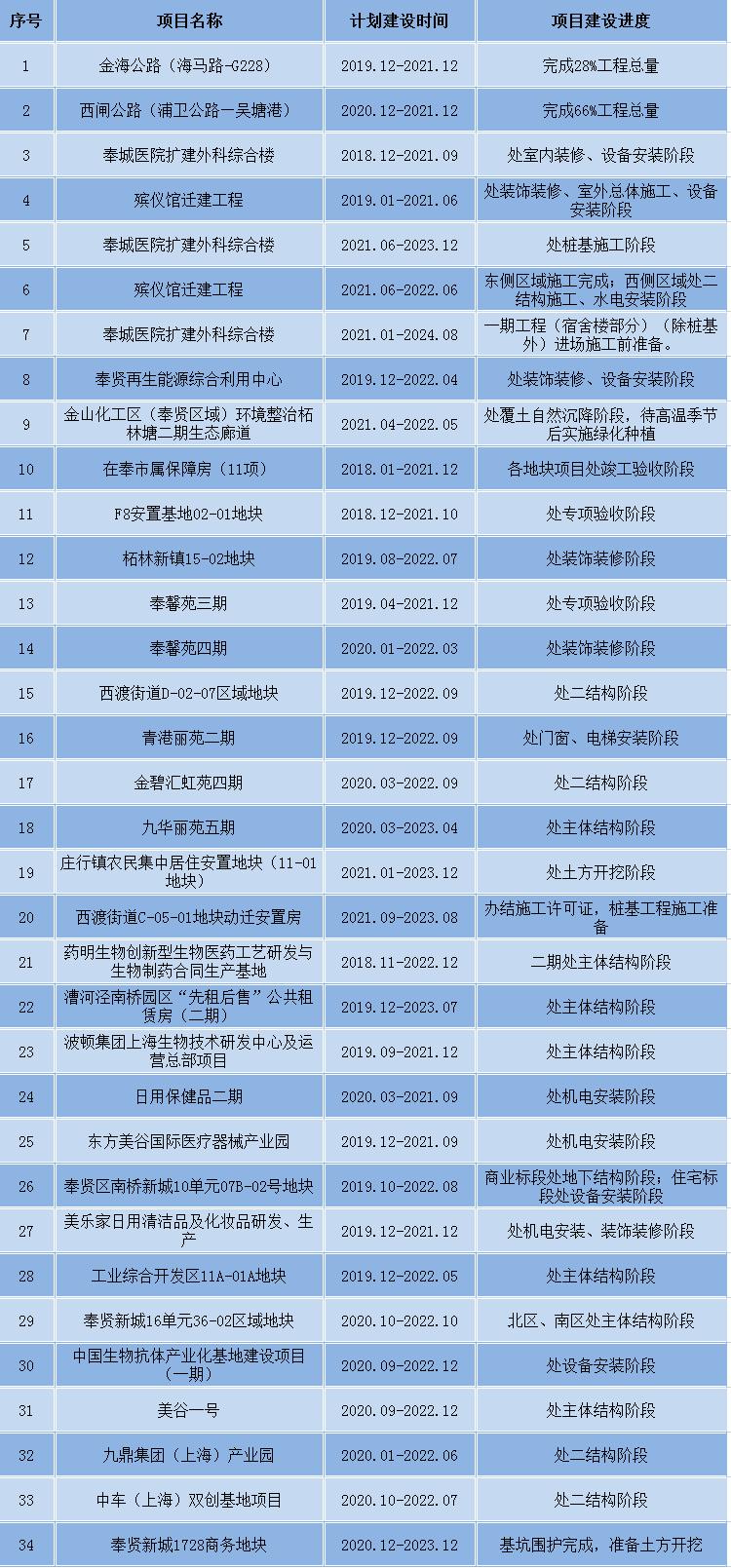 奉贤区重大项目