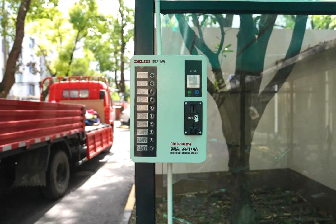 通过旧房改造项目和引进社会第三方的形式,几乎以零成本为辖区内增加大大小小18个可充电的停车棚,提供100多个充电车位。此次增加的可充电车棚考虑到部分老年人不会使用智能手机,充电桩特意加设投币口,居民可通过线上、线下两种方式进行支付使用,充电收费标准为4小时1元。同时还充分考虑到充电车棚安全问题,所有户外充电插座都达到防水防暴雨的安全标准,如果居民使用时突发无法充电、损坏等故障问题,工作人员会第一时间进行抢修。前不久“烟花”台风来袭,所有充电桩均完好无损,没有出现任何安全隐患和损坏等问题,经受住了暴雨、台风的考验。