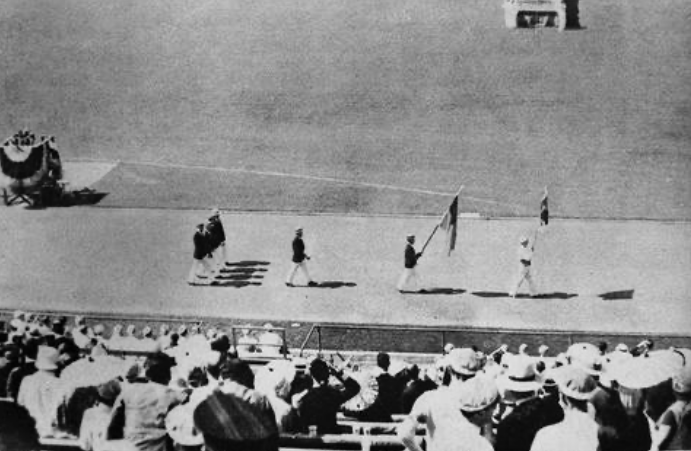 7月30日下午,第十届奥运会开幕式在洛杉矶体育场举行,刘长春作为唯一的中国运动员,打着国旗走在前面,后面是沈嗣良,再后面就是为了壮声势临时拼凑的四人队伍,除了教练宋君复外,还有留美学生刘雪松,旅美教授申国权和美籍人士、上海西青体育主任托平。