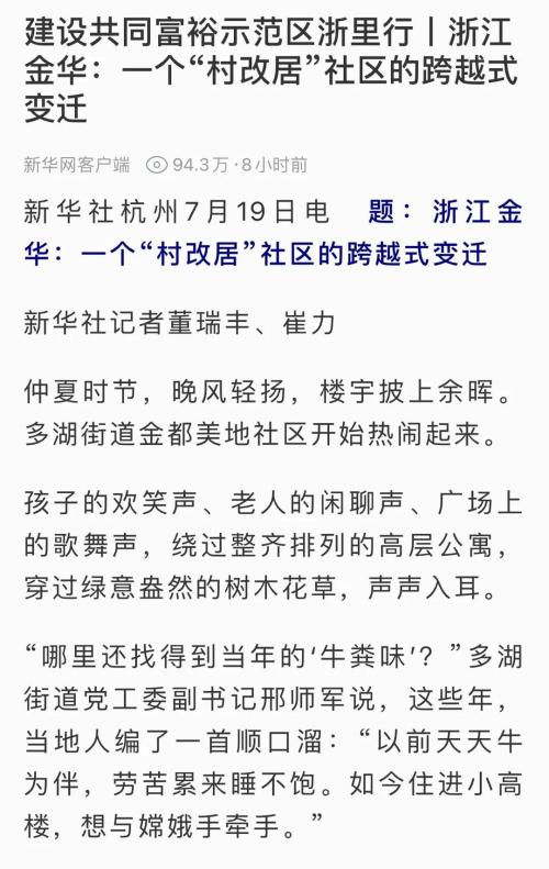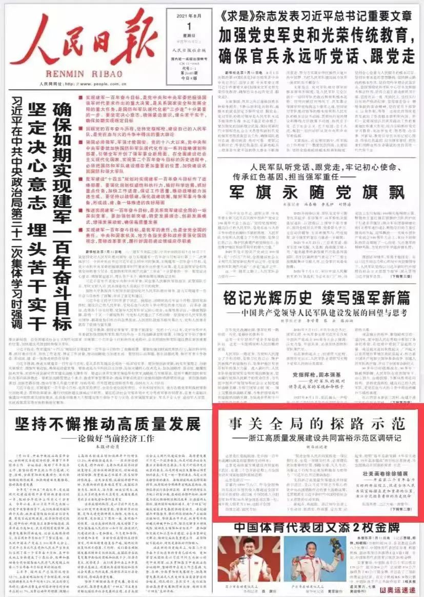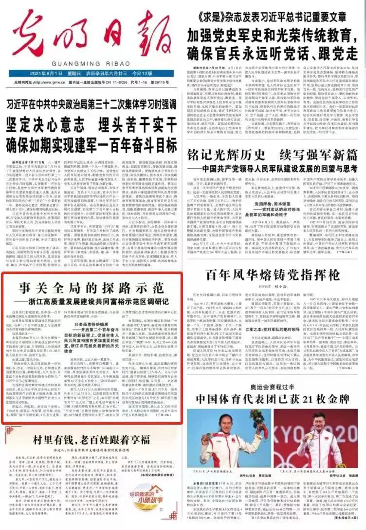 《事关全局的探路示范——浙江高质量发展建设共同富裕示范区调研记》一起来看看报道中的金华元素↓