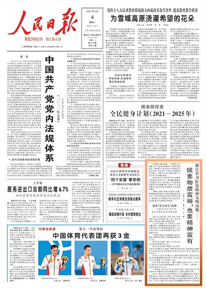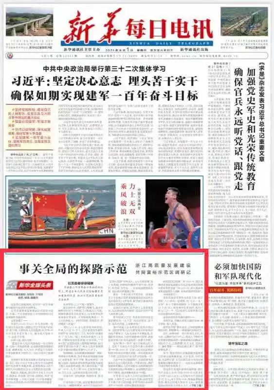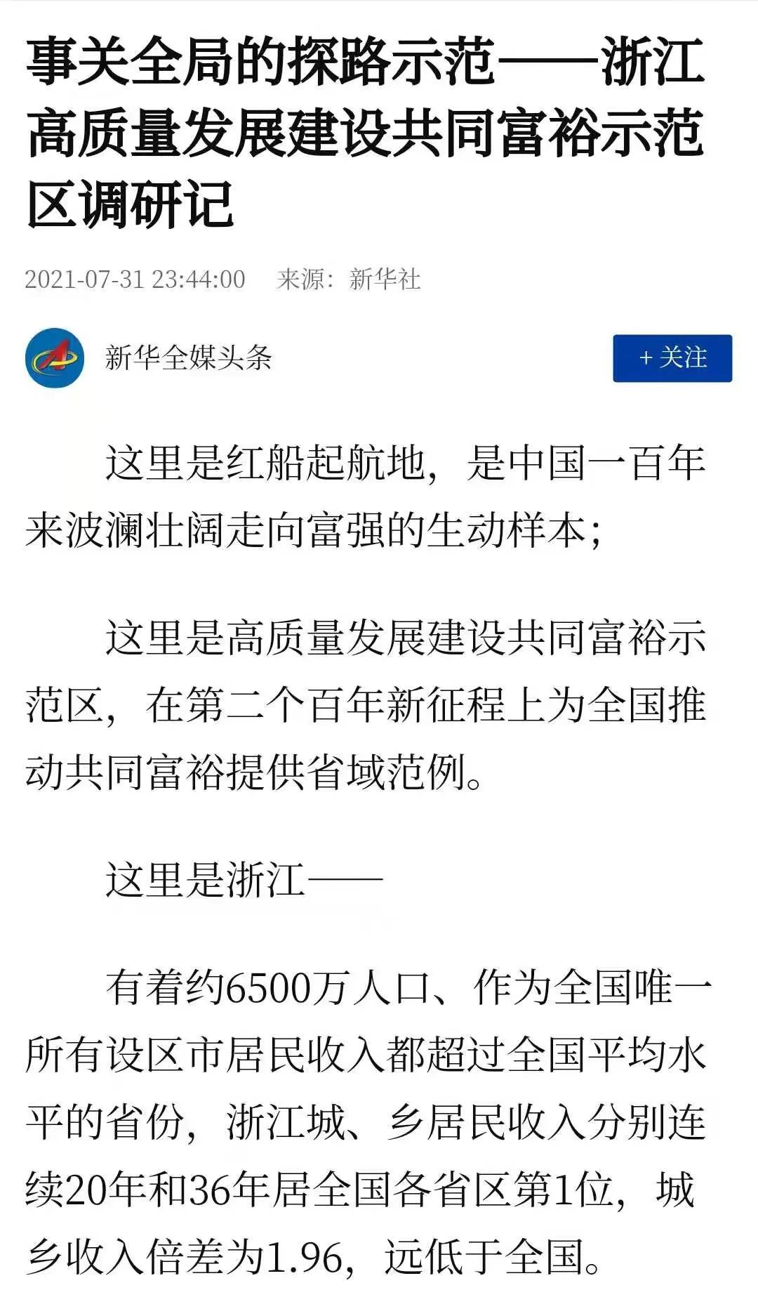 8月2日,央视“新闻联播”播发《[在习近平新时代中国特色社会主义思想指引下]浙江:为全国推动共同富裕先行探索》。