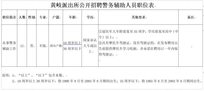 5.符合招聘职位要求。详见《黄岐派出所公开招聘辅警人员职位表》;