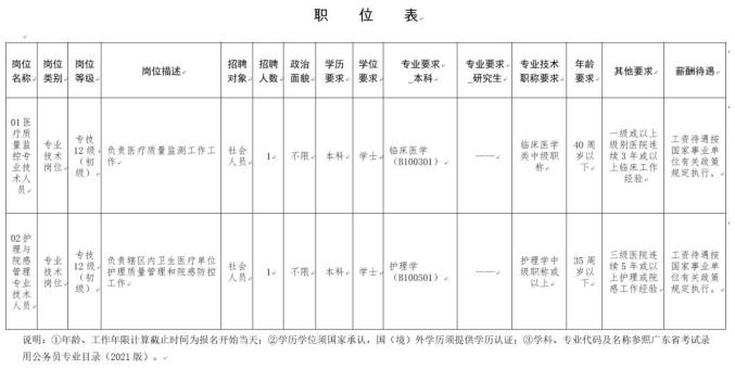 (六)具备岗位所需的其他条件,详见附件《2021年公开招录机关事业单位雇用人员职位表》(详见附件1)。职位表的几点说明如下: