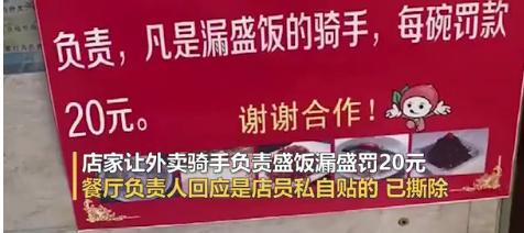 餐馆让外卖骑手负责盛饭 漏盛罚20