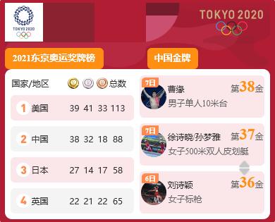 8月8日,第32届夏季奥运会在东京闭幕,中国代表团以38金32银18铜共计88枚奖牌的成绩完美收官。