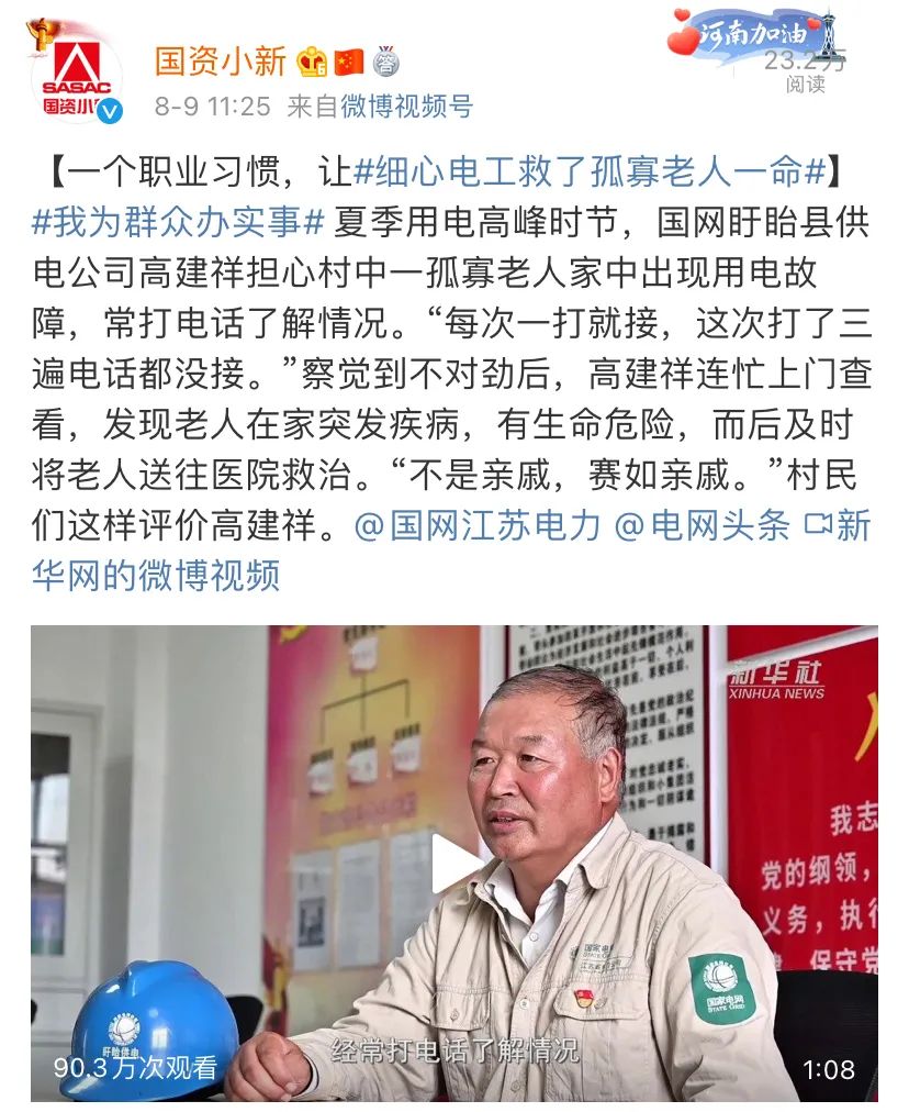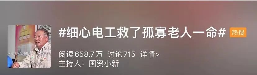 原标题:《他的职业习惯,挽救了独居老人的生命!央企电工再次感动全网!》