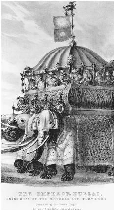 图9:西方画家笔下的忽必烈和士兵们乘坐象辇想象图