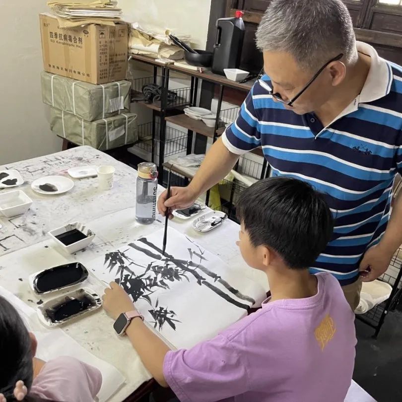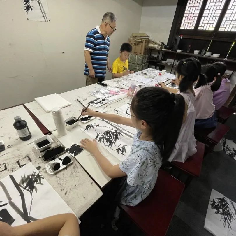 今年的三月一批来自上海书法协会的会员成功与远景村对接,“入驻”这座绞圈房,开设了第一支国画班,该班采用公益性质,村民不需要付费,只需要在村委会报名即可参。随着暑假的到来,为了更好满足村民的需求,7月又增设了一个书法班。