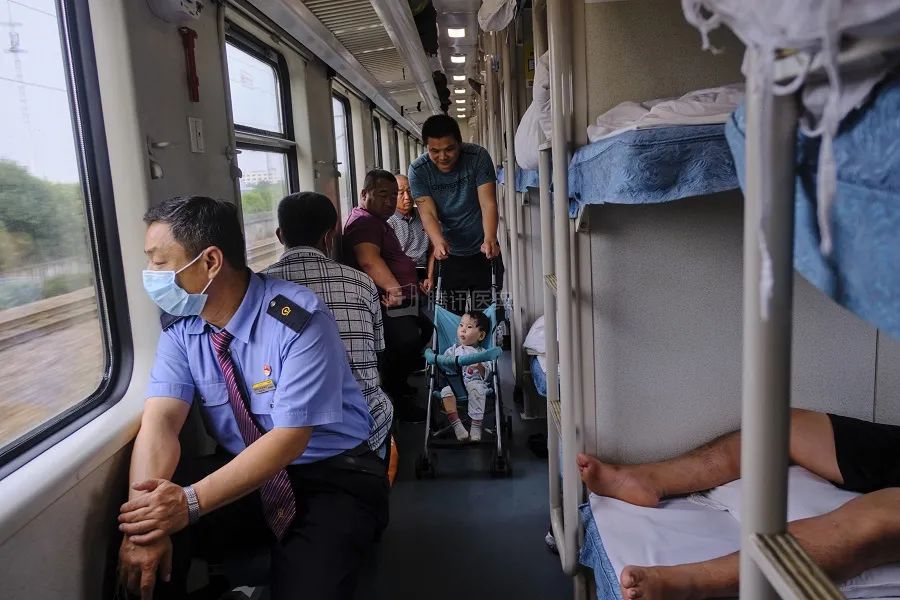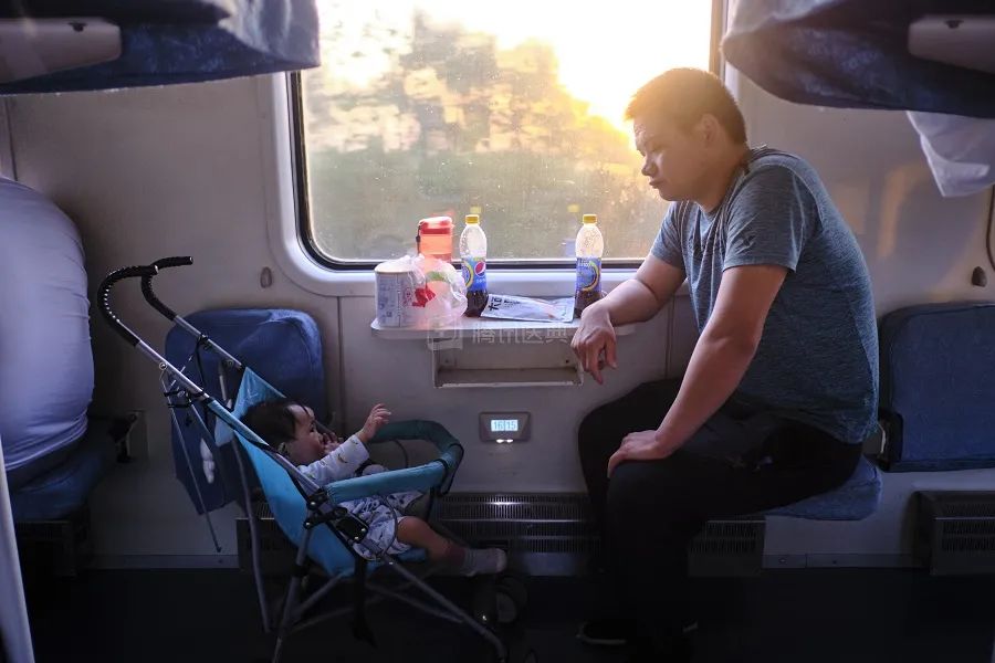 (于海法和熟睡的女儿)清晨5点,列车即将抵达兖州,睡眼朦胧的于海法带着女儿起床洗漱,冲奶粉,整理行囊准备回家。阳光穿透窗户照射进来,于海法看着孩子,笑了。“我能这样看孩子看一天,在家也是这样的。”