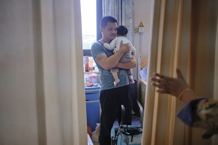 (于海法在病房内抱着女儿)大多数时候,担忧会在医生们的解释和鼓励下稀释掉一些,但有些时候,比如夜深,或是与妻子相互安慰和打气之后,看着身边熟睡的孩子,不免又有些抵挡不住乱想,甚至有点想哭。