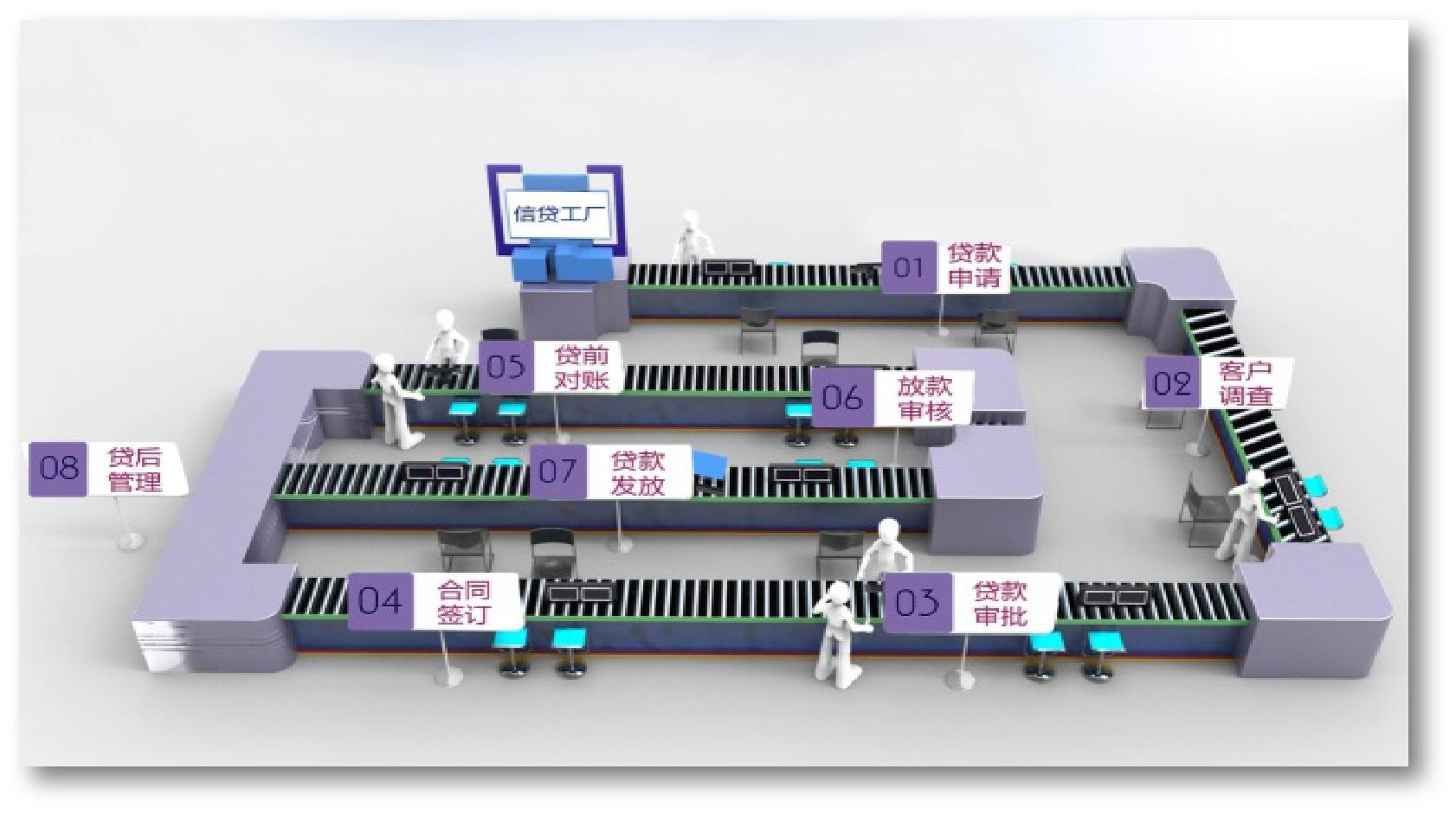 “德国IPC微贷技术,核心是通过交叉检验评估客户偿还贷款的能力,主要依赖经验丰富的信贷客户经理进行高强度现场调研,结合报表数据和调研信息对公司偿还能力进行验证和判断,客户经理全程参与,从贷前决策到贷后管理全流程跟踪。其难点在于信贷人员培养周期较长,成本较高,公司信贷扩张速度受到约束。”常熟银行相关负责人介绍说。2009年,常熟银行确立“做小做散”的经营策略,成立事业部制的微贷专营机构,就引进德国IPC微贷技术,对小微市场进行探索。常熟银行对其小微贷款业务流程进行“碎片化、并联式”改造,通过标准化作业流程使信贷流程的前、中、后台分离,前台通过标准化模板收集信息,中后台高效地在线审批、放款,逐步形成了标准化、可复制的常农商“信贷工厂”模式。