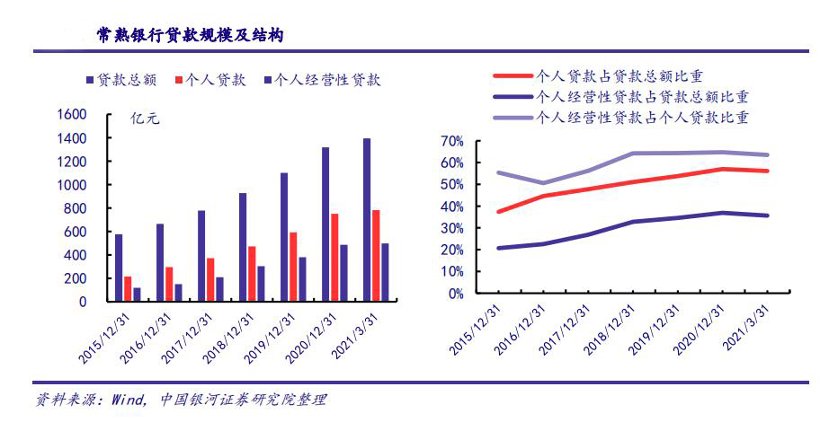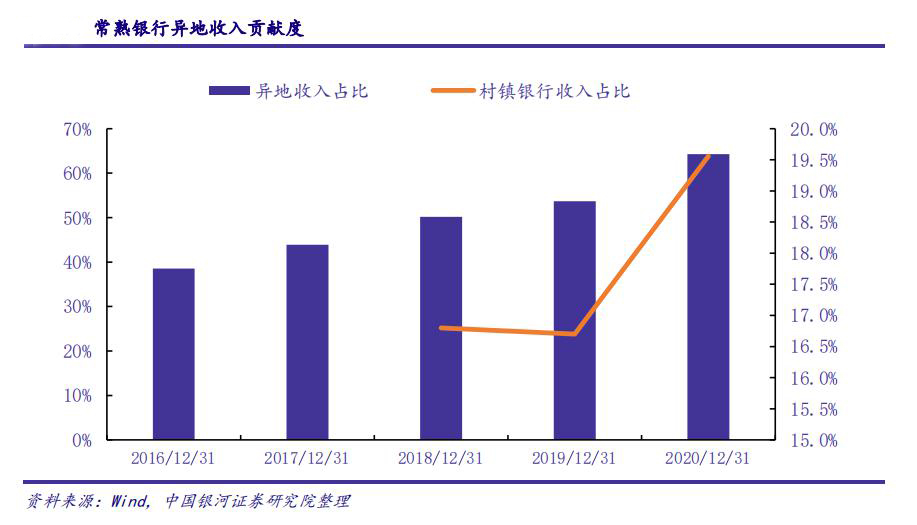 2007年常熟银行以增资扩股方式引入交通银行战略入股,成为全国首家引入国有大行作为战略投资者的农村商业银行。截至2021年第一季度末,交通银行持有该行约9%股份,是常熟银行第一大股东。2021年6月,常熟银行与交通银行签署2021-2023年战略合作协议,明确2021-2023年双方将围绕普惠金融、贸易金融、科技金融、财富金融等重点领域继续开展合作,助力常熟银行持续走在农商行前列。依托布局省内的分支机构和辐射全国的村镇银行,常熟银行积极推动日臻成熟的小微信贷工厂模式“走出去”,经过十多年发展,目前已拥有常熟以外地区机构59家,覆盖江苏省内10个地市,这些异地机构复制微贷技术、专营镇村市场,取得了良好的成效。从2007年在湖北咸丰设立首家村镇银行开始,常熟银行按照“一张执照、一支队伍、一个模式”的思路,已在湖北、江苏、云南、河南、海南等5省市批量化组建了31家兴福村镇银行,其中有22家在中西部县域,设立初覆盖了16个国定贫困县,并从2016年起,逐步建立了近百家新型农村金融服务点“兴福驿站”。所有村行均采用常熟银行微贷技术,确立了“本地化、有特色、不做大、往下沉、有效益、可持续”的十八字方针,基本形成“一亏二平三盈利”格局,即新开村镇银行第一年略微亏损、第二年盈亏持平、第三年开始盈利。2019年,常熟银行设立全国首家投资管理型村镇银行,对辖内兴福系村镇银行实行集约化管理。