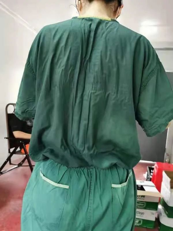 ▲半天工作下来,汗水湿透手术衣从瘦西湖边经过,