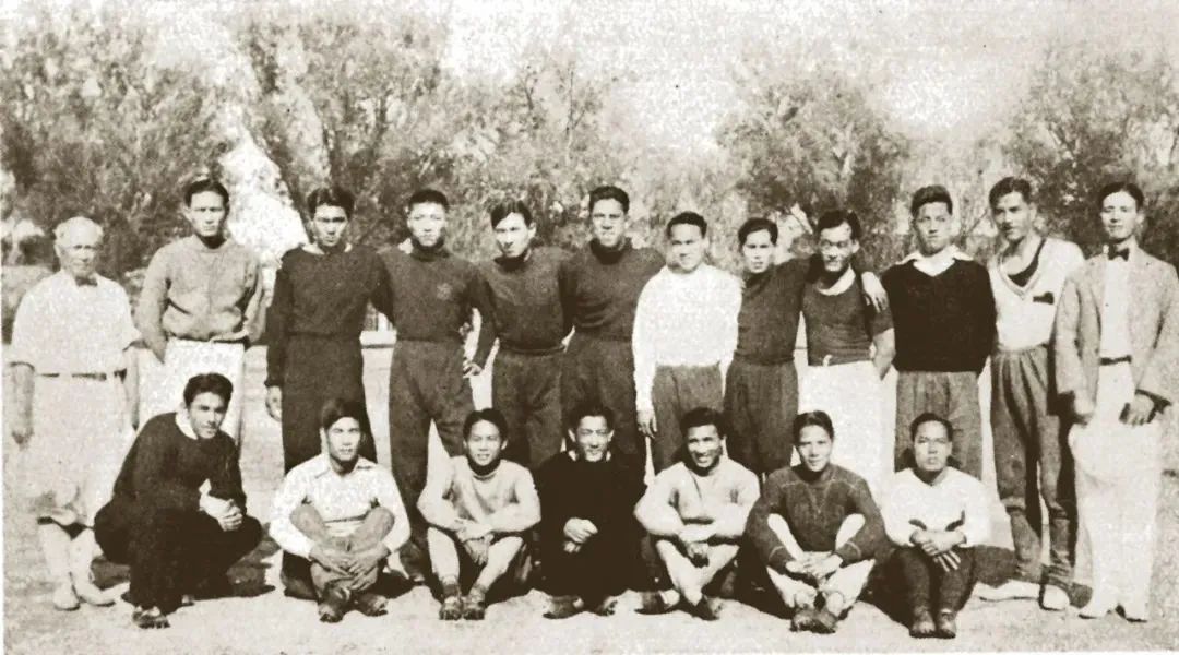 参加第十一届柏林奥运会的中国田径、竞走、游泳、自行车队队员与教练合影