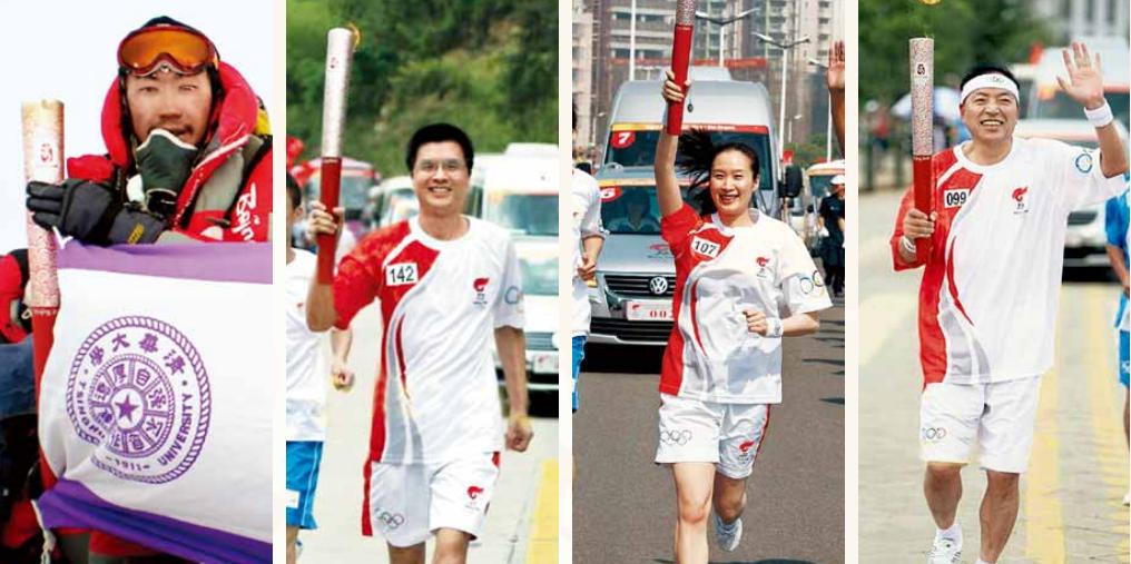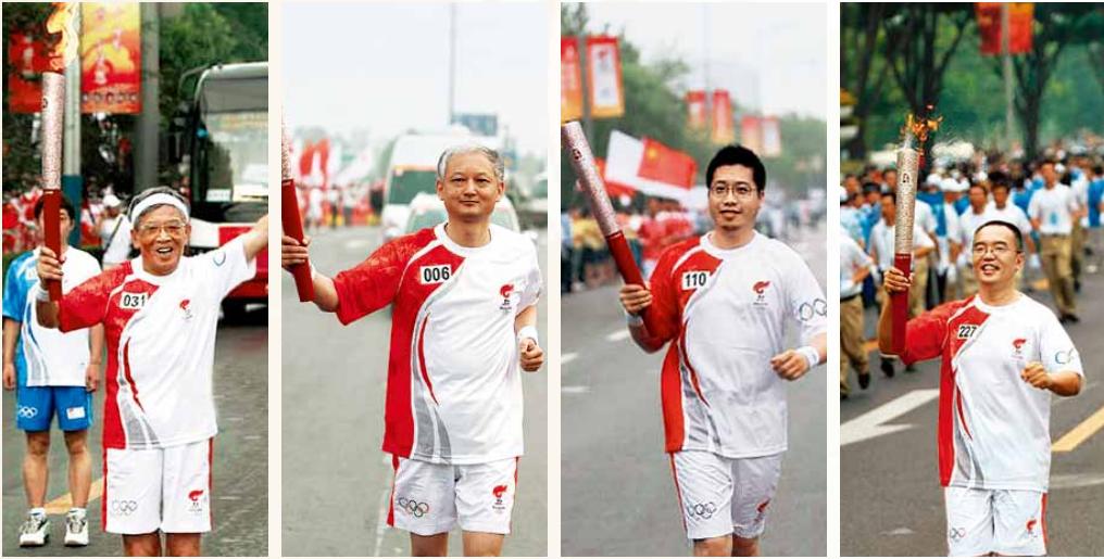 学校领导和参与北京奥运会工作的体育部教师合影严冬冬、姚强、周小菁、栗德祥、邵昶魁、曹振水、张玲玲、陈孝伟、肖丽丽、李希光、孙晓、黄海军、罗福午、陈国青、陈楠、胡洁、马新东、王一南、胡凯、黄晓霞共20位清华人担任北京奥运会火炬手。