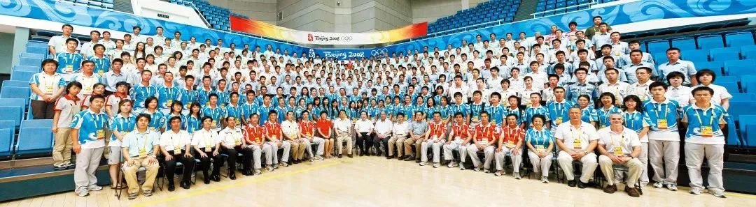 清华大学校领导和第29届奥运会清华大学体育馆运行团队全体成员合影