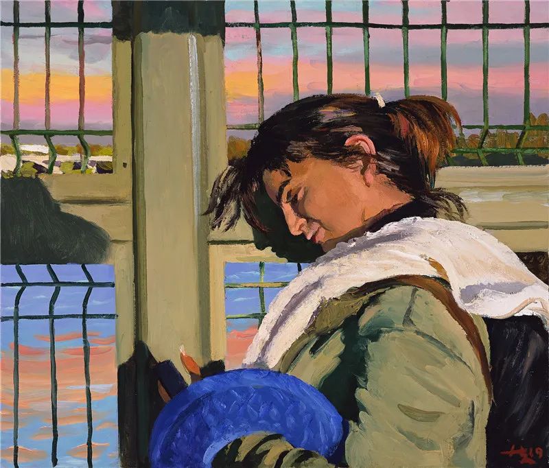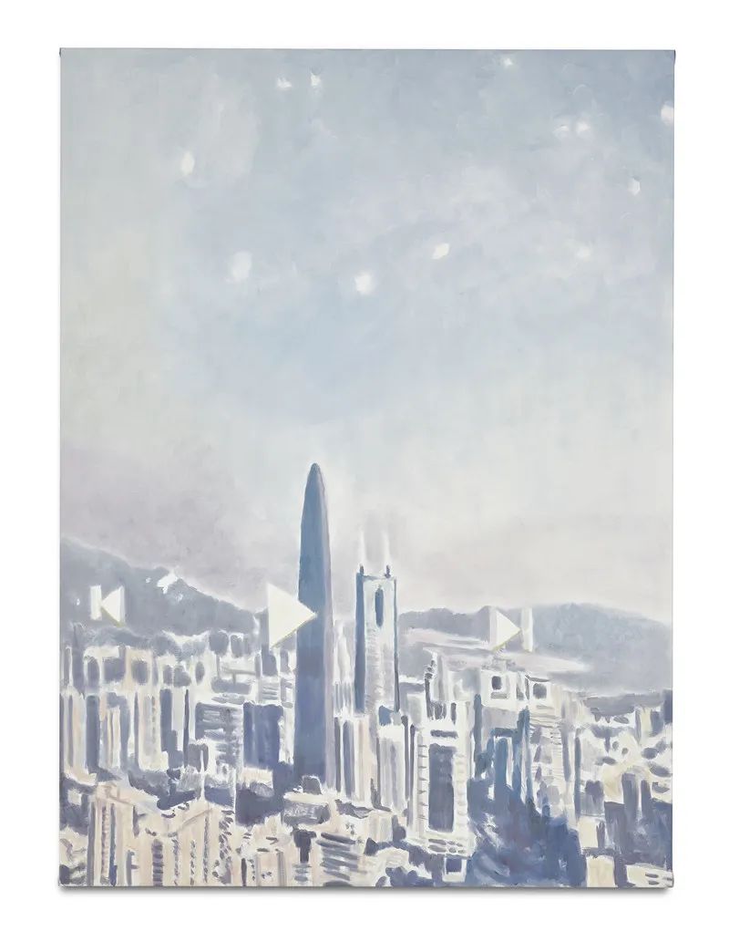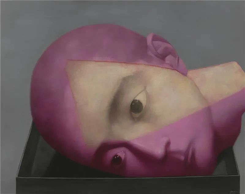 张晓刚2021年新作《关于睡眠5 号》,张晓刚的“睡眠”系列可以追溯回2008年,是艺术家从《失忆与记忆》系列中衍生出的一组作品。对张晓刚来说,睡眠正是失忆和记忆交织之间的某种状态,也是个体和时代碰撞后的一种潜意识显现。在这件作品中,一个巨大的头颅似乎与身体切段,呈现在画布上。人物眼睛睁大,仿佛并没有进入真正的睡眠,而画面本身也可以被理解为一次荒诞的梦境。张晓刚认为,我们在梦中所感受的到的状态和现实世界中能感受到的状态是相似的,但更多的是相反的,正是这种与现实的冲突感赋予作品冷峻荒诞的气息。