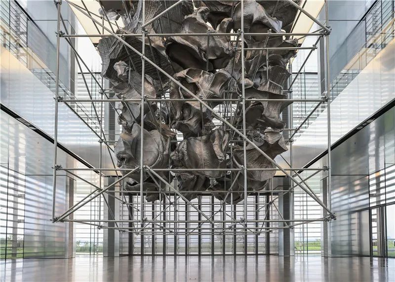 在这里展示了隋建国的最新大型雕塑作品,也是其专门为此次展览创作的作品,巨大的尺寸从美术馆的一楼延伸到二楼,搭配着脚手架,很像是矗立在建筑中的“建筑”,也是其“云中花园”系列的最新实践。