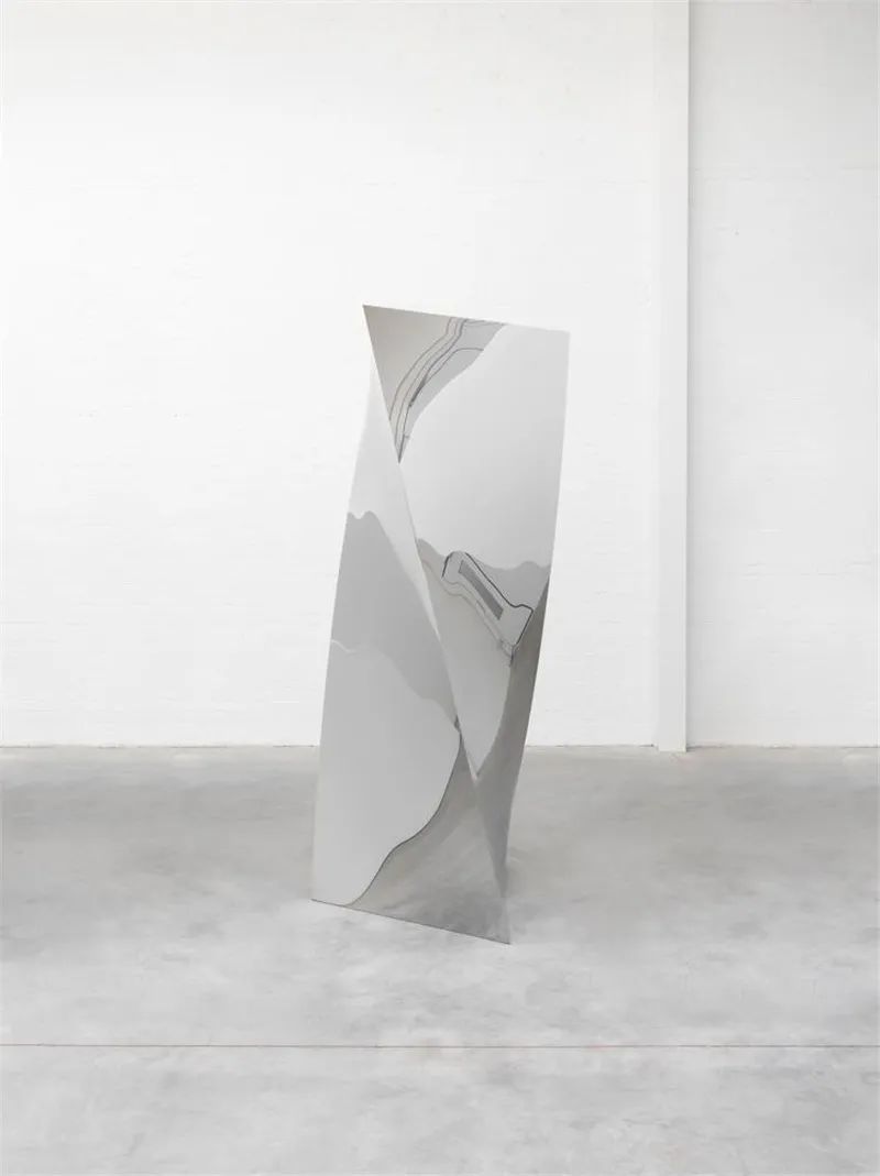 此外,在展览中还可以看到安尼施.卡普尔《非物质(三角的扭转)》,在这件作品中, 由不锈钢制成的非物体扭曲造成了反射图像的扭曲,并解构了轮廓,将它们转化为抽象的形状。旁观者看到的世界不仅被疏远,而且是颠倒的。眼睛滑离表面,转向内在的眼睛,转向情感,转向和期待难以理解的维度,如无限和想法。卡普尔把他的作品看作是与根深蒂固的形而上学极性、存在与缺失、存在与非存在、场所与非场所以及实体与无形相联系的。