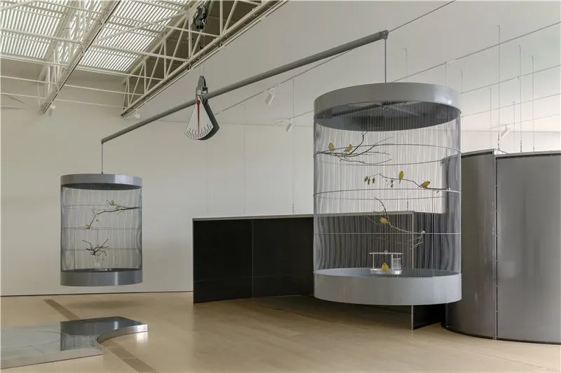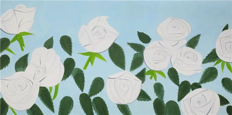 卡斯滕·霍勒的《金丝雀群岛》,在霍勒90年代开始他的艺术生涯时,动物就时常出现在其作品里。他经常研究鸟类,更具体地说是金丝雀。由于金丝雀自古以来便是一种家养鸟类,霍勒将它理解为一种介于自然界和人类文明之间的产物。《金丝雀群岛》是一件悬挂在天花板的装置作品,两个巨型金丝雀鸟笼分别挂在一根长杆的两头。两个鸟笼的造型、材质、重量完全一致,内部放着相同品种、数量的金丝雀。在屋顶悬挂点处,有一个水平计,可以显示出这两个鸟笼是否处在平衡的位置。观众可以观察两个笼子中金丝雀的行为差异:歌声,飞行模式等等,以及这些行为差异和鸟笼平衡的关系。亚历克斯·卡茨的《白玫瑰 9》,AlexKatz这件《白色玫瑰9》的作品以油彩绘于亚麻布上,淡蓝色的背景上高低有致的10支白玫瑰。这种对于花卉近景的描绘也是Katz 的经典系列之一,他将这些花卉从一片花丛中“抽离”出来,来描绘每一朵花的细节“姿态”。白花、绿叶和蓝色背景格外相称,清新雅致,仿佛似有花香从画面上缓缓散出。