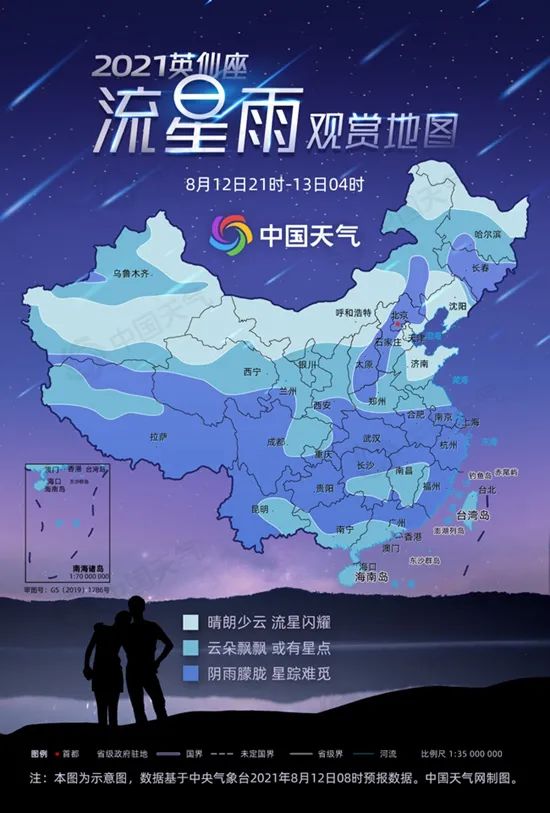 不过今夜我国部分地区(还蛮大部分的)天气状况都不是很理想。中国天气做了一张关于今晚流星雨的观赏地图,搬运给大家: